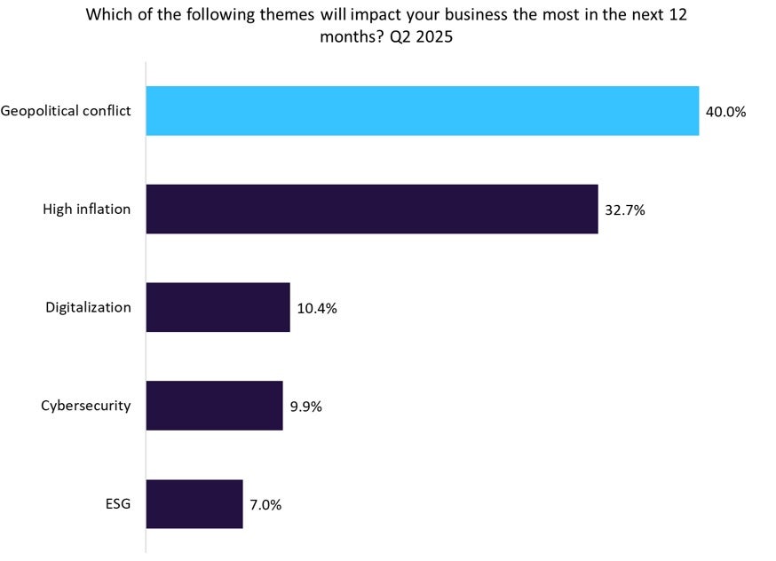 GlobalData finds geopolitical conflict risk now surpasses inflation and cybersecurity; forcing insurers to adapt.