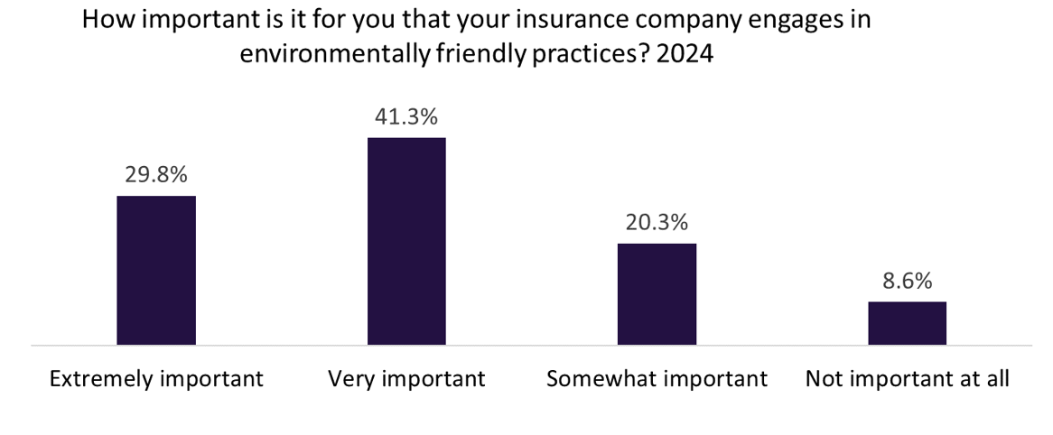 GlobalData’s 2024 Emerging Trends Insurance Consumer Survey found that a total of 77% of respondents were either very or somewhat concerned about global warming and climate change. Only 9.7% of respondents were not concerned about the issue. Furthermore, 71.1% believe it is extremely or very important that insurers engage in environmentally friendly practices. This indicates that consumers already want to see action from insurers—and this expectation will only increase as younger generations enter the insurance market.
