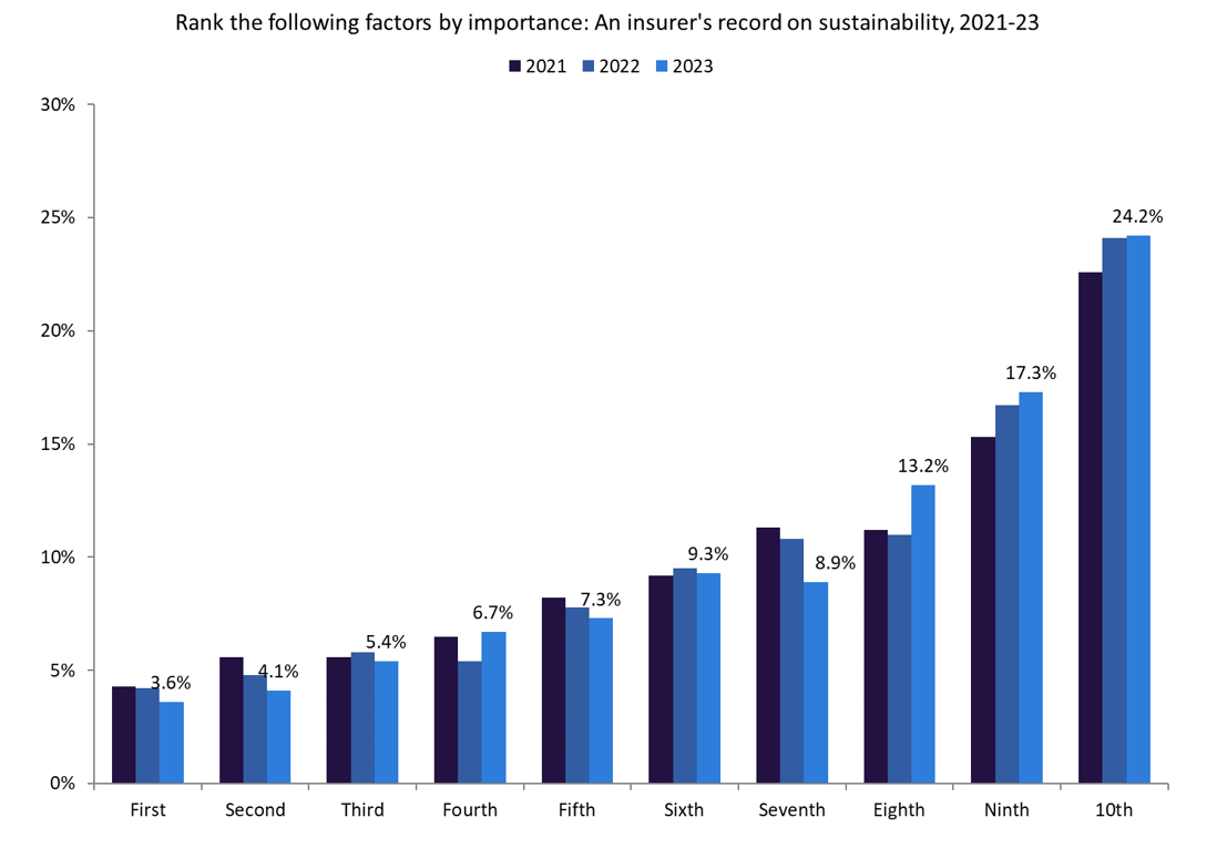 Sustainability remains a key long-term trend, and our data does show that SMEs believe insurers should have strong records in this area. But it remains a long way off being a significant factor for customers at the point of purchase.