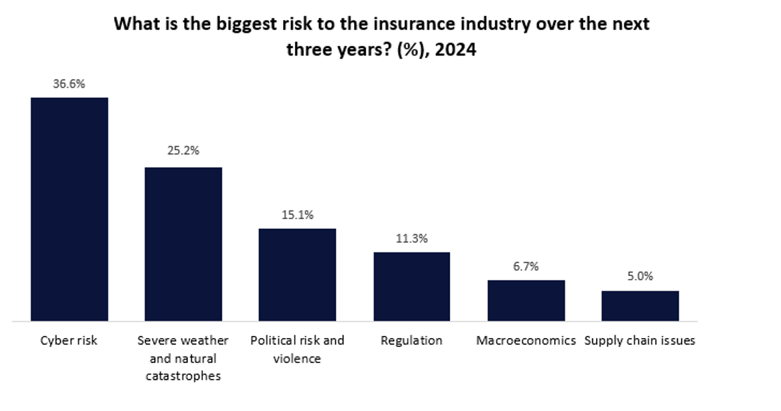 Severe weather events and natural catastrophes are some of the biggest challenges faced by the insurance industry. A GlobalData poll conducted on Verdict Media sites in Q2 2024 found that 25.2% of insurance industry executives believe severe weather and natural catastrophes will be the biggest threat to the industry over the next three years, second only to cyber threats at 36.6%. Severe weather/natural catastrophes significantly outranked threats such as political risk and violence (15.1%) and regulation (11.3%).