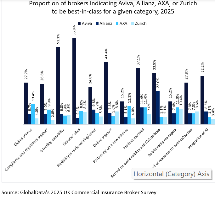 Aviva has received high praise from brokers in GlobalData’s 2025 UK Commercial Insurance Broker Survey, leading the market in 10 of the 12 surveyed categories including underwriting flexibility, digital capabilities and AI integration – essential elements in the fast-changing insurance landscape.